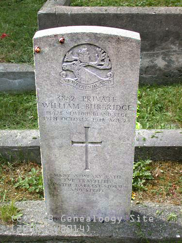 | 3882 Private William Burbridge Royal Newfoundland Regiment 19th October 1918 Age 24 ~ Many A Weary Path I've Travelled In The Darkest Storm And Strife |