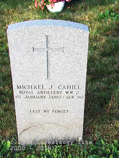 | Michael J. Cahill Royal Artillery WW II 7 Jan 2003 Age 80 Lest We Forget |