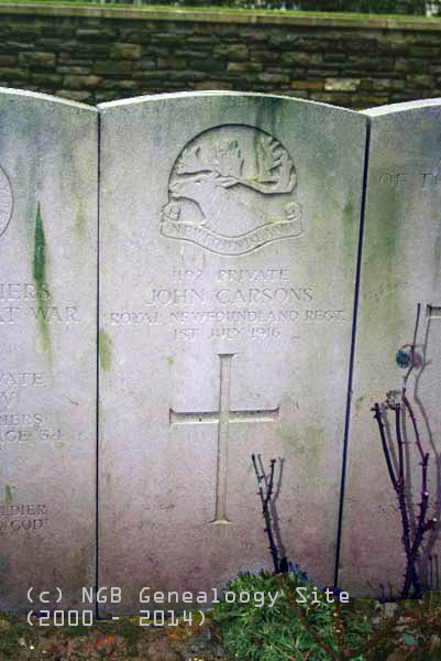 | Regt # 1192 Pte John Carsons Royal Newfoundland Regiment 1st Jul 1916 |