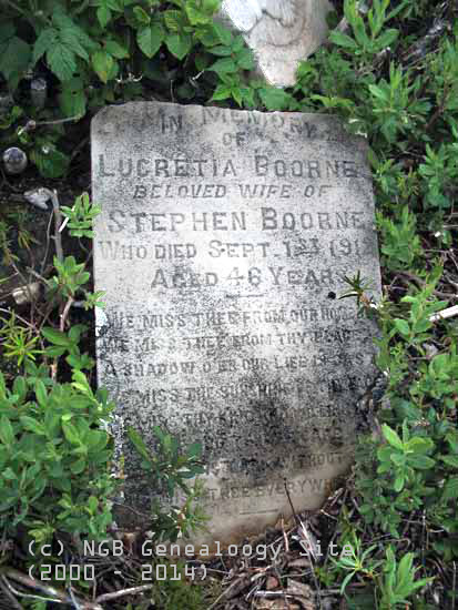 | In memory of Lucretia BOORNE beloved wife of Stephen Boorne who died September 1, 1912 age 46 years. | |