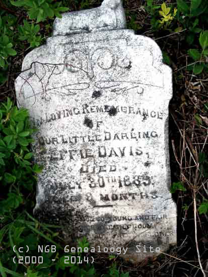| In Loving Remembrance of Our Little Darling Effie DAVIS. Died July 30 1889. Age 9 Months. | |
