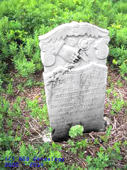 | In loving memory of Samuel MERCER beloved son of Bethlehem and Jane Mercer. Drowned January 10, 1912. Age 10 years. | |