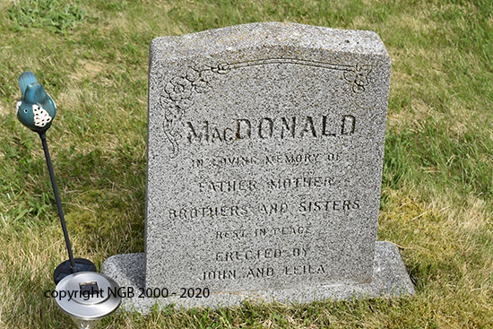 | McDONALD | Margaret | Oct 13, 1901 | Wife of John A. McDonald MULLAN" Native of Mabou C. B. |