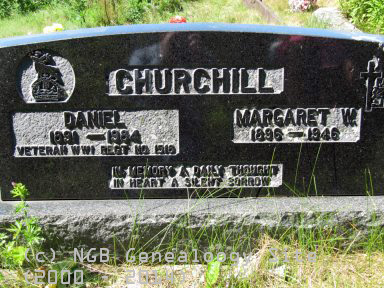 | Daniel Churchill 1891 ~ 1984 Royal Newfoundland Regiment # 1518 WW I Margaret W. Churchill 1896 ~ 1946 In Memory A Daily Thought In Heart A Silent Sorrow |