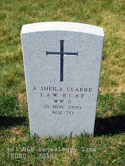 | A. Sheila Clarke L.A.W. R.C.A.F. WW II 21 Nov 1995 Age 70 |