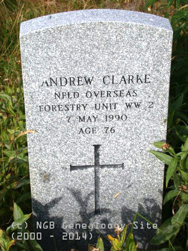| Andrew Clarke Newfoundland Overseas Forestry Unit WW II 7 May 1990 Age 76 |