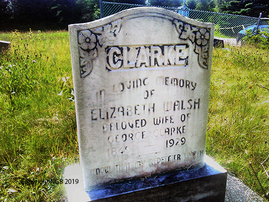| ELIZABETH WALSH CLARKE 1849 - 1929 Beloved Wife of George Clarke |
