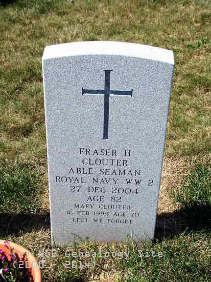 | Fraser H. Clouter Able Seaman - Royal Navy WW II 27 Dec 2004 Age 82 Mary Clouter 16 Feb 1995 Age 70 Lest We Forget |