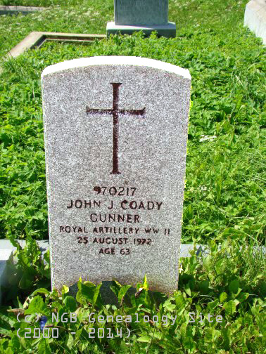 | 970217 John J. Coady Royal Artillery WW II 25 August 1972 Age 63 |