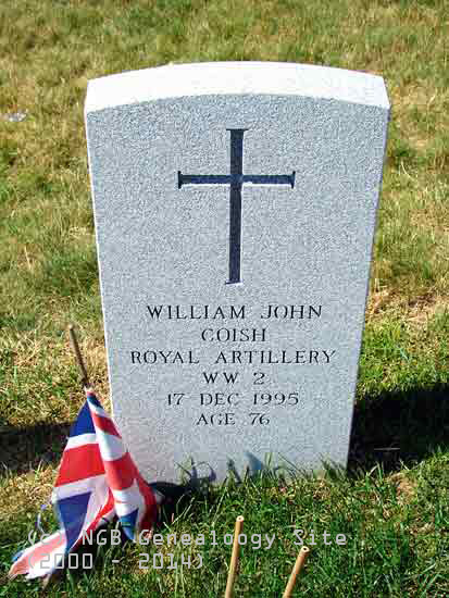 | William John Coish Royal Artillery. WW II 17 Dec 1995 Age 76 |