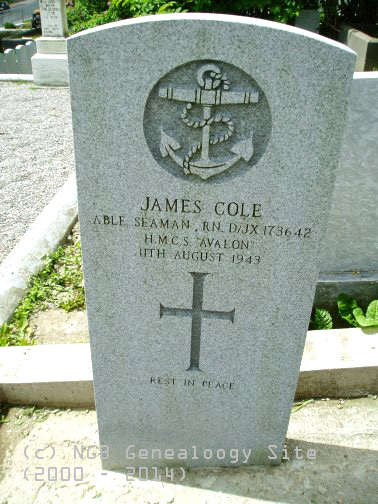 | James Cole Able Seaman ~ RN D/JX173642 H.M.C.S. Avalon WW II 11 August 1943 ~ Rest in Peace |