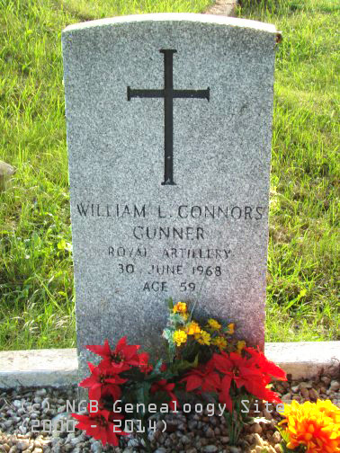 | William L. Connors Gunner Royal Artillery 30 June 1968 Age 59 |
