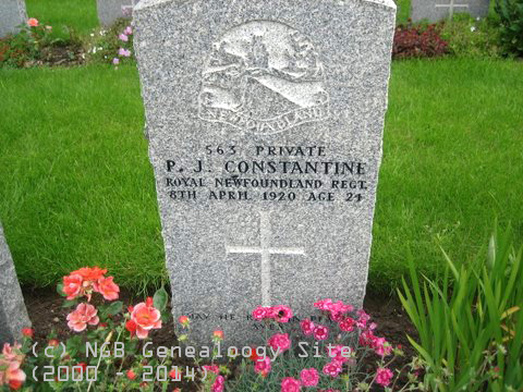 | Regimental # 563 P.J. Constantine Private - Royal Newfoundland Regiment 8 Apr 1920 Age 24 |