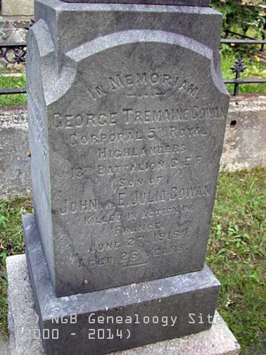 Cowan Corporal 5th Royal Highlanders ~ 13th Battalion Canadian Expeditionary Force ~ WW I 27 Jun 1916 Age 26 |