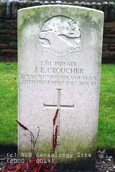 | Regt # 2711 Pte James E. Croucher Royal Newfoundland Regiment 20th Nov 1917 Age 18 |