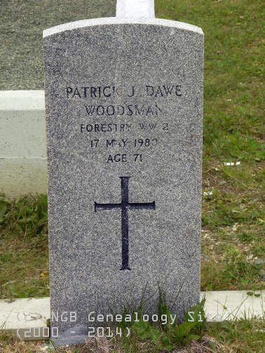 Dawe Woodsman Newfoundland Overseas Forestry Unit WW II 17 May 1980 Age 71 |