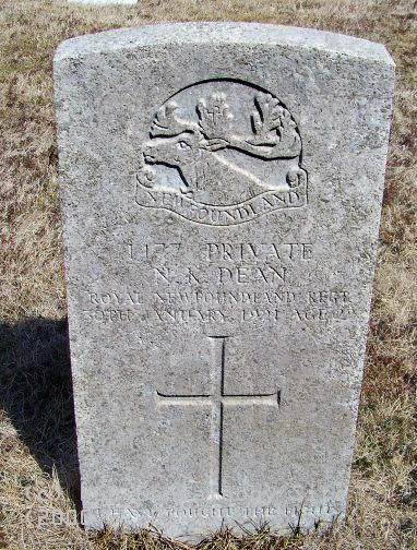 | 1177 Private N.K. Dean Royal Newfoundland Regiment 30th January 1921 Age 22 ~ I Have Fought The Fight |