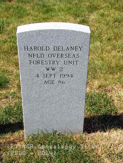 | Harold Delaney Newfoundland Overseas Forestry Unit WW II 4 Sep 1994 Age 86 |