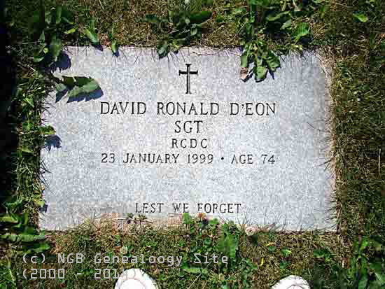 | David Ronald D'Eon Sergeant - R.C.D.C. 23 Jan 1999 Age 74 Lest We Forget |