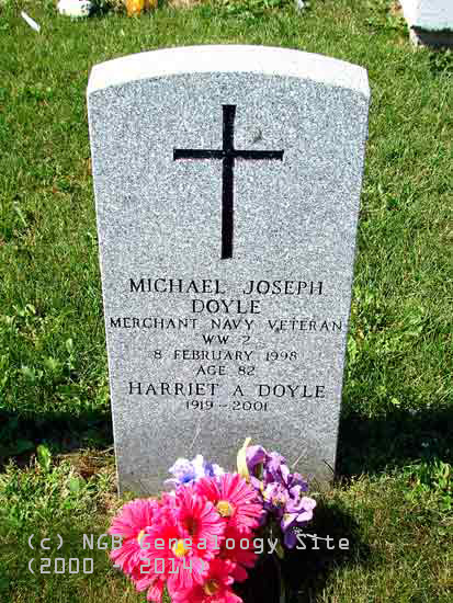| Michael Joseph Doyle Merchant Navy Veteran WW II 8 Feb 1998 Age 82 Harriet A. Doyle 1919-2001 |