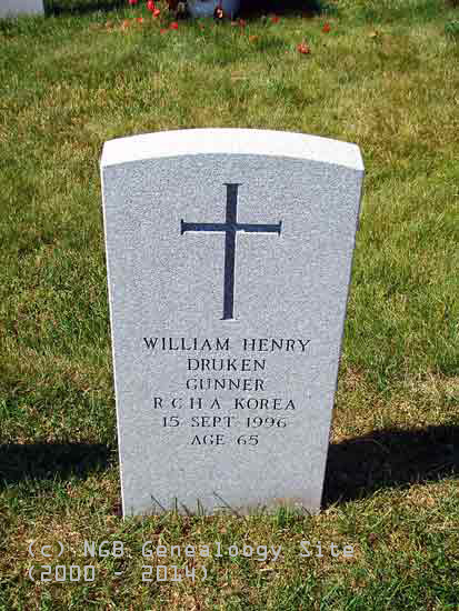 | William Henry Druken Gunner R.C.H.A. Korea 15 Sep 1996 Age 65 |