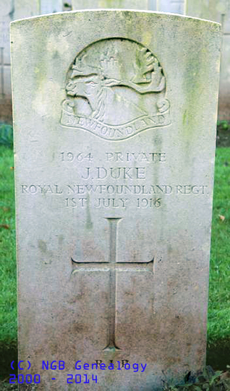 | 1964 Private J. Duke Royal Newfoundland Regiment 1st Jul 1916 ~ R.I.P. |