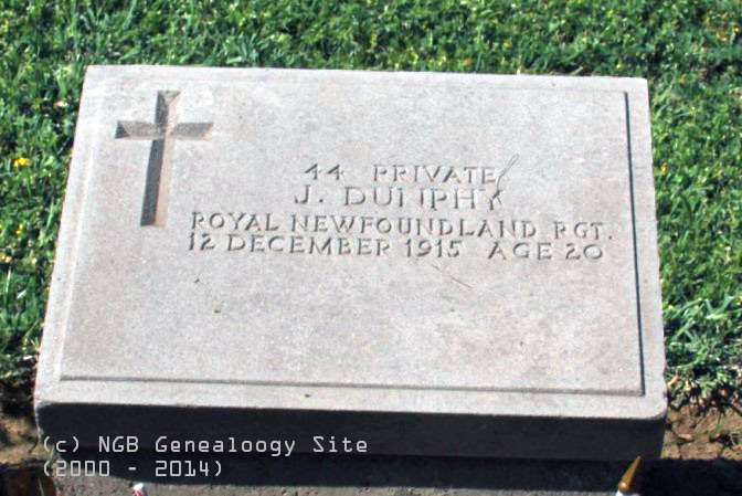 | 44 Private J. Dunphy Royal Newfoundland Regiment 12 Dec 1915 Age 20 |