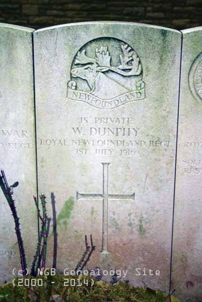 | Regt # 15 Pte William Dunphy Royal Newfoundland Regiment 1st Jul 1916 |