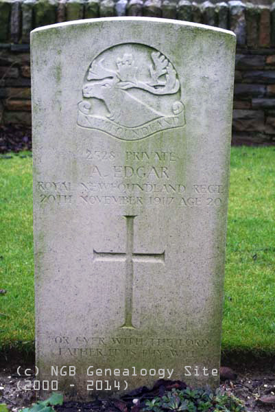 | Regt # 2528 Pte Albert Edgar Royal Newfoundland Regiment 20th Nov 1917 Age 20 |