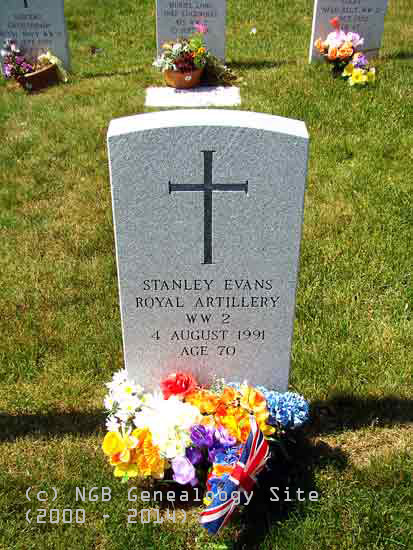 | Stanley Evans Royal Artillery WW II 4 Aug 1991 Age 70 |