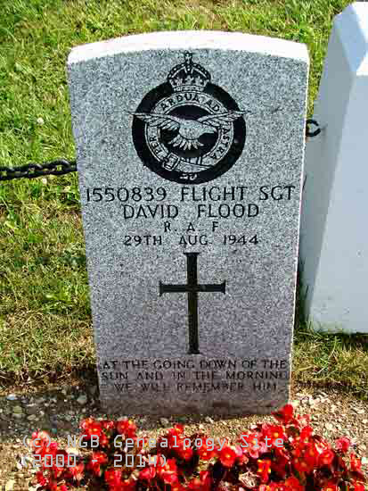 | 1550839 David Flood Flight Sergeant - Royal Air Force 29 Aug 1944 At The Going Down Of The Sun And In The Morning We Will Remember Him |