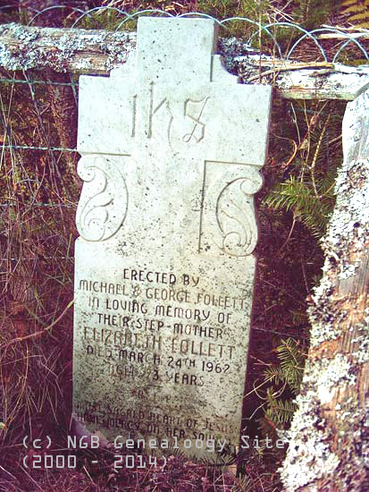 IHS Erected By Michael & George Follett In Loving Memory of Their Step-Mother Elizabeth Follett Died March 24th, 1962 Aged 73 Years RIP Most Sacred Heart of Jesus Have Mercy on Her Soul |