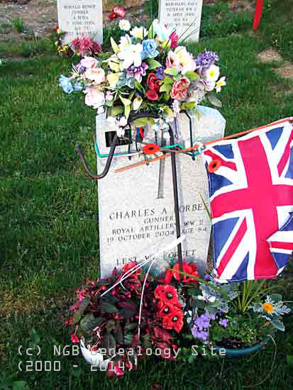 | Charles A. Forbes Gunner - Royal Artillery WW II 19 Oct 2004 Age 84 Lest We Forget |
