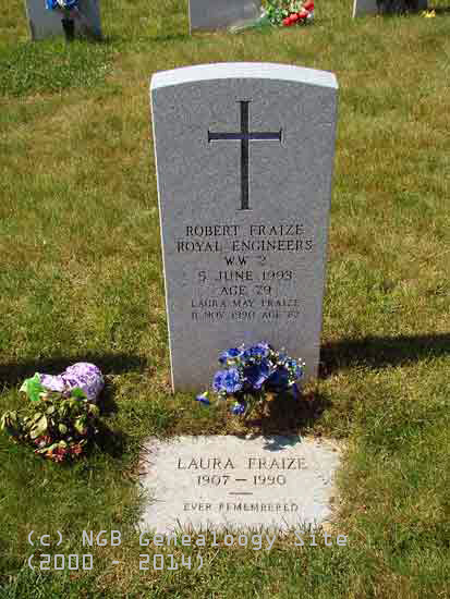 | Robert Fraize Royal Engineers WW II 5 Jun 1993 Age 79 Laura Fraize 1907-1990 Age 83 |
