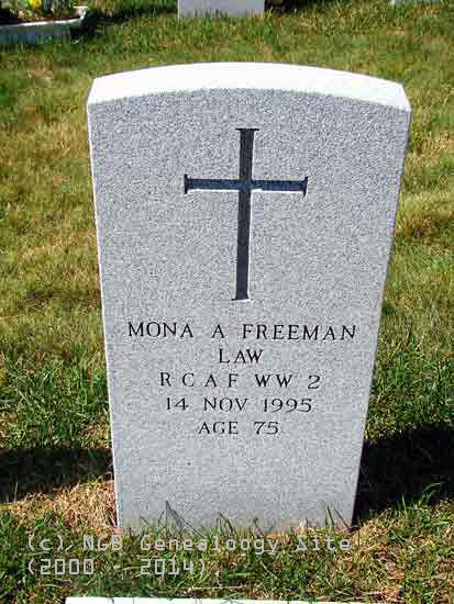 | Mona A. Freeman L.A.W. , R.C.A.F. WW II 14 Nov 1995 Age 75 |
