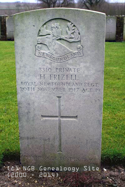 | Regt # 3310 Pte Henry Frizell Royal Newfoundland Regiment 20th Nov 1917 Age 19 |