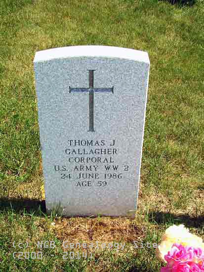 | Thomas J. Gallagher Corporal - U.S. Army WW II 24 Jun 1986 Age 59 |