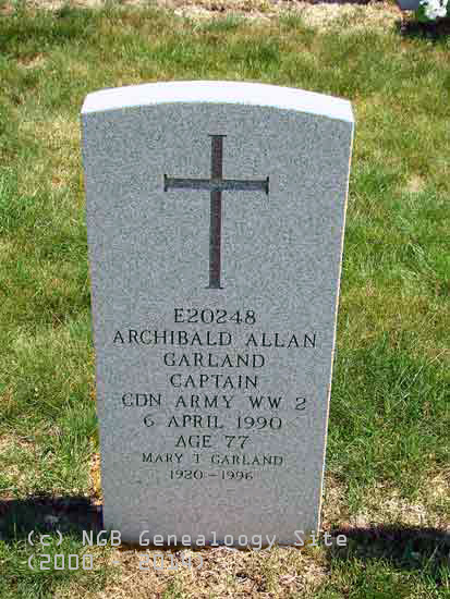 | E20248 Archibald Allan Garland Captain - Canadian Army WW II 6 Apr 1990 Age 77 Mary T. Garland 1920-1996 |