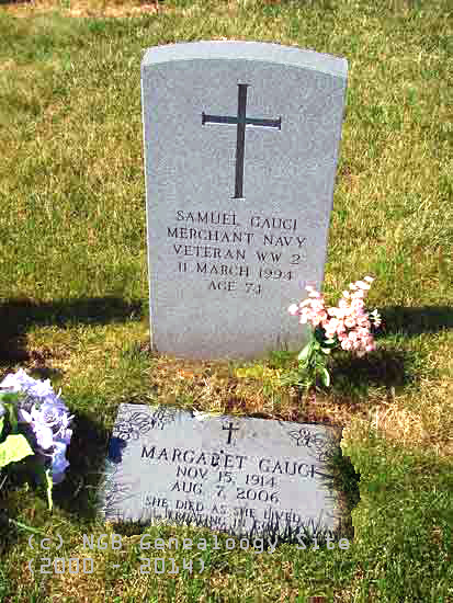 | Samuel Gauci Merchant Navy Veteran WW II 11 Mary 1994 Age 74 Margaret Gauci Nov 15 1914-Aug 7 2006 |