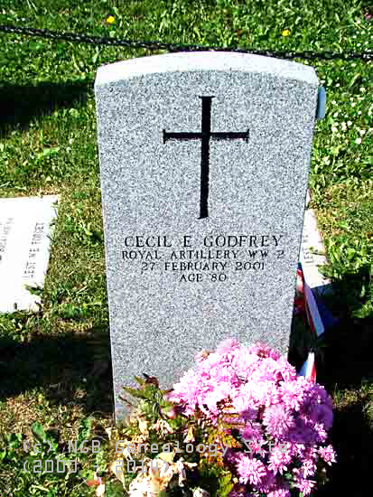 | Cecil E. Godfrey Royal Artillery WW II 27 Feb 2001 Age 80 |