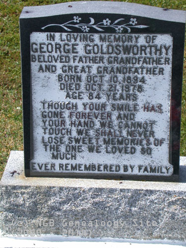 | George Goldsworthy Born: Oct 10, 1894 Died: Oct. 29, 1978 Aged 84 Years |