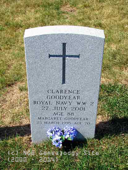 | Clarence Goodyear Royal Navy WW II 27 Jul 2001 Age 88 Margaret Goodyear 25 Mar 1995 Age 70 |