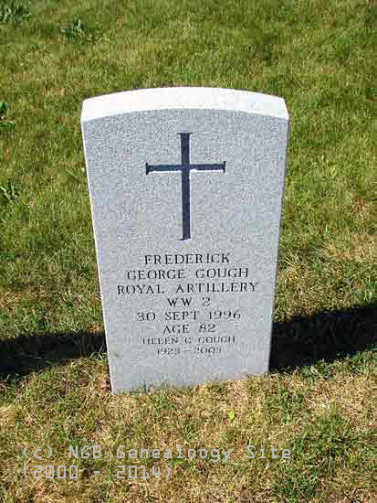 | Frederick George Gough Royal Artillery WW II 30 Dec 1996 Age 82 Helen G. Gough 1923-2003 |
