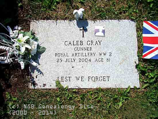 | Caleb Gray Gunner - Royal Artillery WW II 25 Jul 2004 Age 81 Lest We Forget |