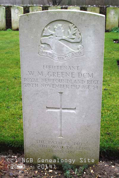 | Regt # 266 Lieutenant Walter Martin Greene D.C.M. Royal Newfoundland Regiment 20th Nov 1917 Age 24 |