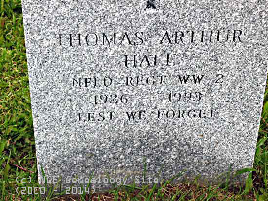| Thomas Arthur Hall Newfoundland Regiment WW II 1926 - 1993 Lest We Forget |