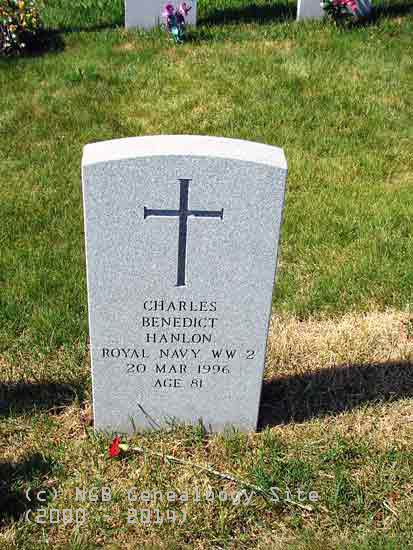 | Charles Benedict Hanlon Royal Navy WW II 20 Mar 1996 Age 81 |