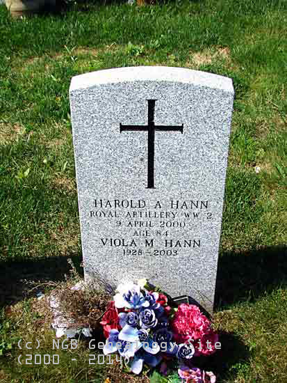| Harold A. Hann Royal Artillery WW II 9 Apr 2000 Age 84 Viola M. Hann 1928-2003 |