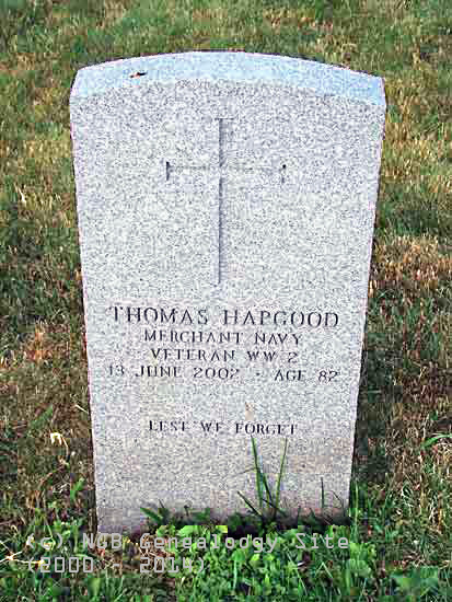 | Thomas Hapgood Merchant Navy Veteran WW II 13 Jun 2002 Age 82 Lest We Forget |