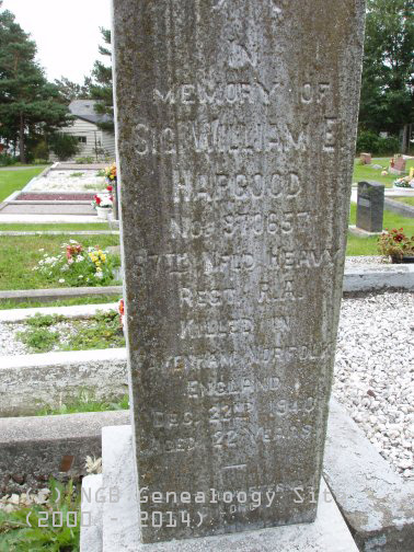 | William E. Hapgood No. 970657 57th Newfoundland Heavy Regiment Royal Artillery Killed in Avenham, Norfork, England Dec 22nd, 1940 Age 22 Years ~ Grant Him Eternal Rest, O Lord |